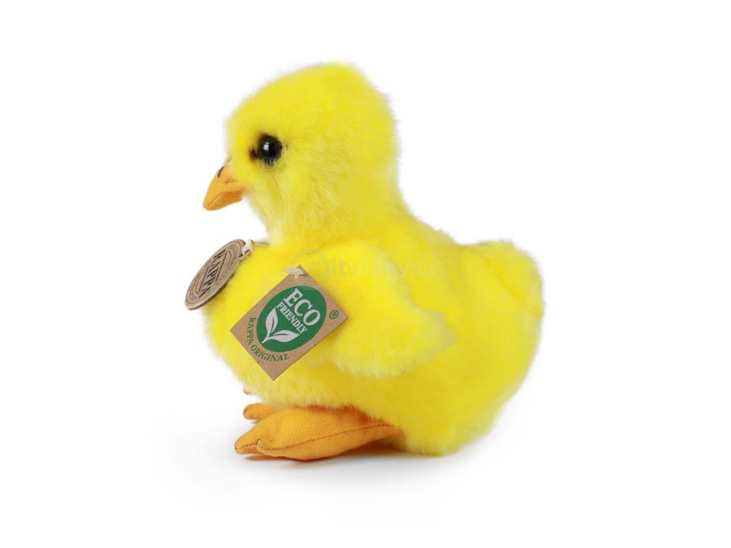 Plyšové kuře měří 14 cm a díky těm nejkvalitnějším materiálům se řadí do Exkluzivní kolekce plyšových hraček značky Rappa. Díky ručnímu zpracování každého kusu navíc vypadá jako živý. Proč označení ECO-FRIENDLY? Rappa si je vědoma všech dopadů na životního prostředí, zaměřuje se na udržitelnost a omezení používání plastů na minimum. Proto je výplň hraček vyrobena z recyklovaných materiálů, zejména PET lahví. Ta je však zcela nezávadná a vhodná i pro děti od narození. FUN FACT: Věděli jste, že kuřata se dokážou ozývat ještě před vylíhnutím?Doplňkové parametry