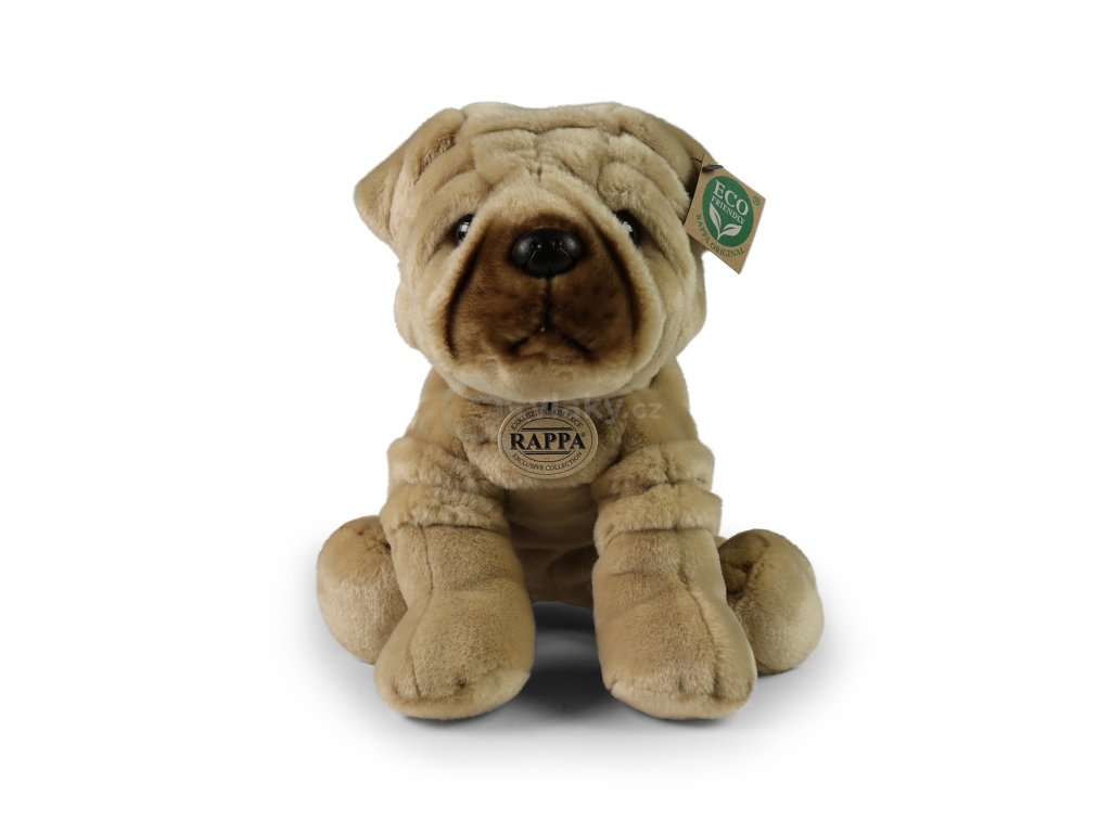 Plyšový pes rasy Šarpej měří 40 cm a díky těm nejkvalitnějším materiálům se řadí do Exkluzivní kolekce plyšových hraček značky Rappa. Díky ručnímu zpracování každého kusu navíc vypadá jako živý. Proč označení ECO-FRIENDLY? Rappa si je vědoma všech dopadů na životního prostředí, zaměřuje se na udržitelnost a omezení používání plastů na minimum. Proto je výplň hraček vyrobena z recyklovaných materiálů, zejména PET lahví. Ta je však zcela nezávadná a vhodná i pro děti od narození. FUN FACT: Věděli jste, že přestože byli šarpejové dříve používáni jako bojoví psi, jsou dnes známí svou klidnou povahou a proto patří nyní mezi skvělé společníky a hlídače?Doplňkové parametry