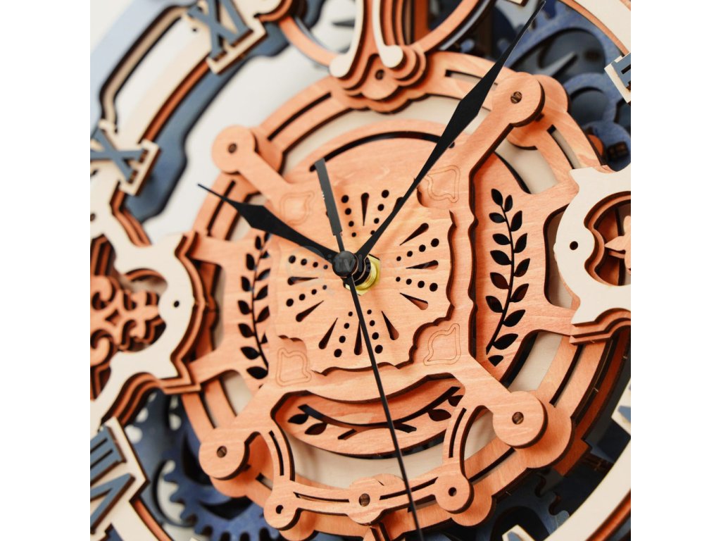 RoboTime 3D dřevěné mechanické puzzle Nástěnné hodiny