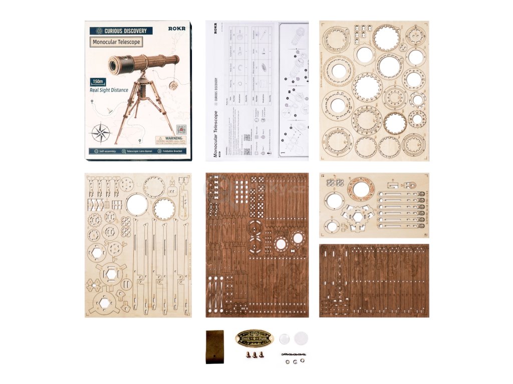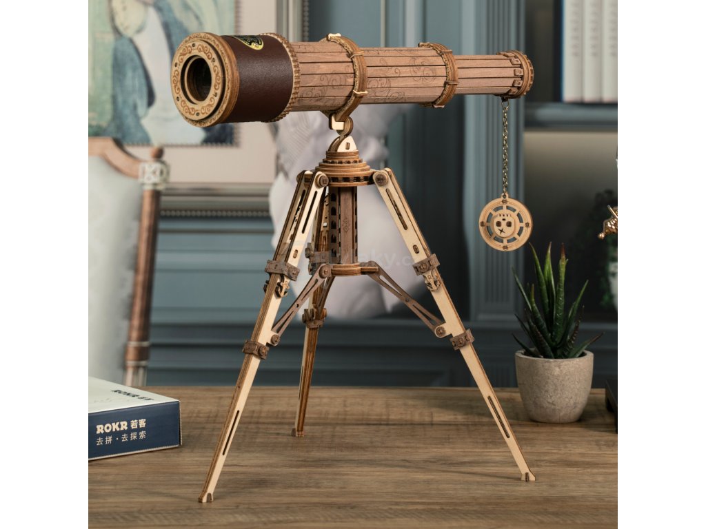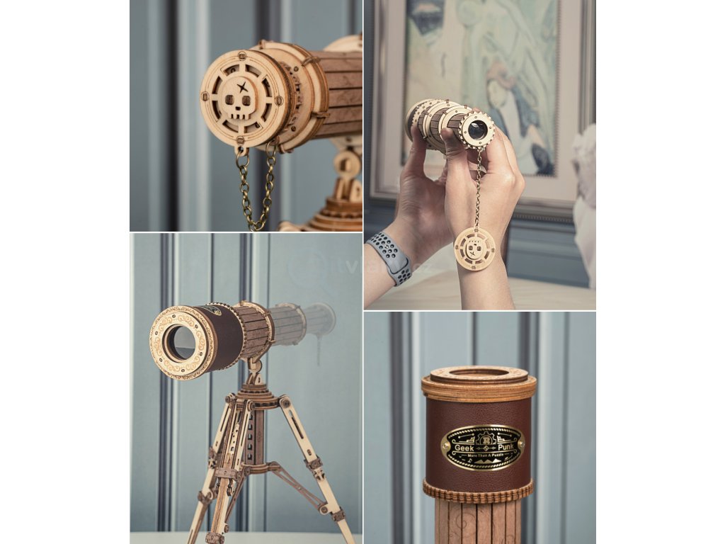 Pro všechny rozené navigátory. Stavebnice monokulárního dalekohledu z překližky. Dekorován pruhem kůže se štítkem a krytkou s reliéfem lebky. Je skladný a je dodáván i s praktickým skladným stativem. Jedinečný dárek pro všechny milovníky kutilství, luxusní interiérová dekorace do pokoje či kanceláře. Skládačka je dodávána v nesloženém stavu, balena v krabici. Vybaveno detailním návodem k sestavení.