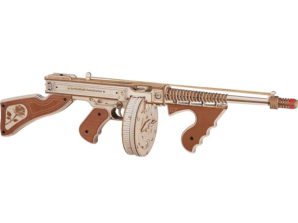 RoboTime 3D Dřevěné mechanické puzzle Samopal Thompson