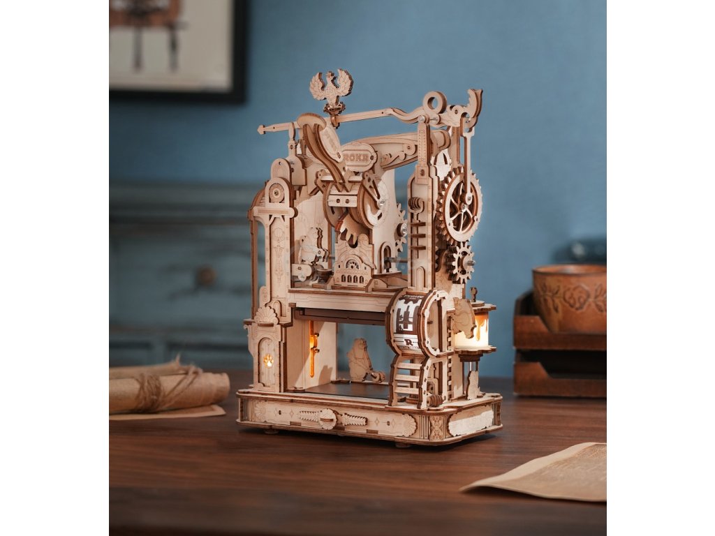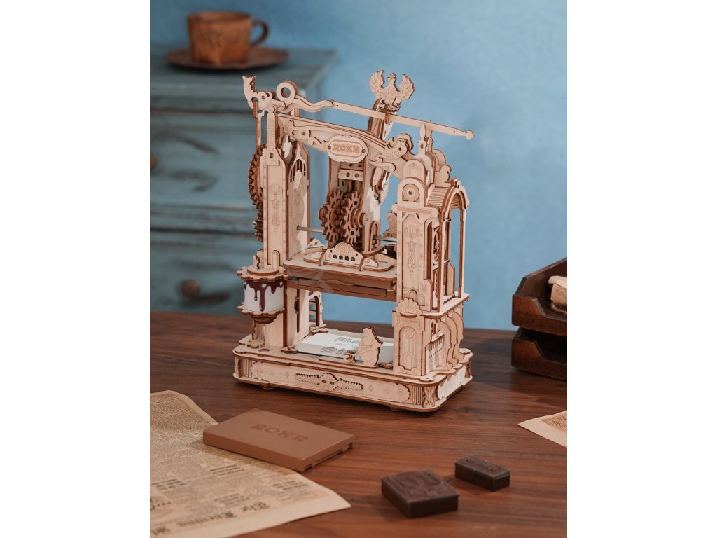 RoboTime 3D dřevěné mechanické puzzle Tiskařský lis
