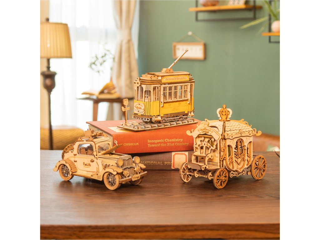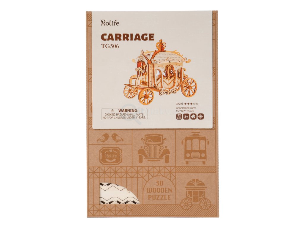 Detailní model historického kočáru. Patří do řady skládaček, které jsou určeny k vystavení, nejsou interaktivní a nemají žádné pohyblivé díly. Skládačka je dodávána v nesloženém stavu, balena v krabici. Vybaveno detailním návodem k sestavení.