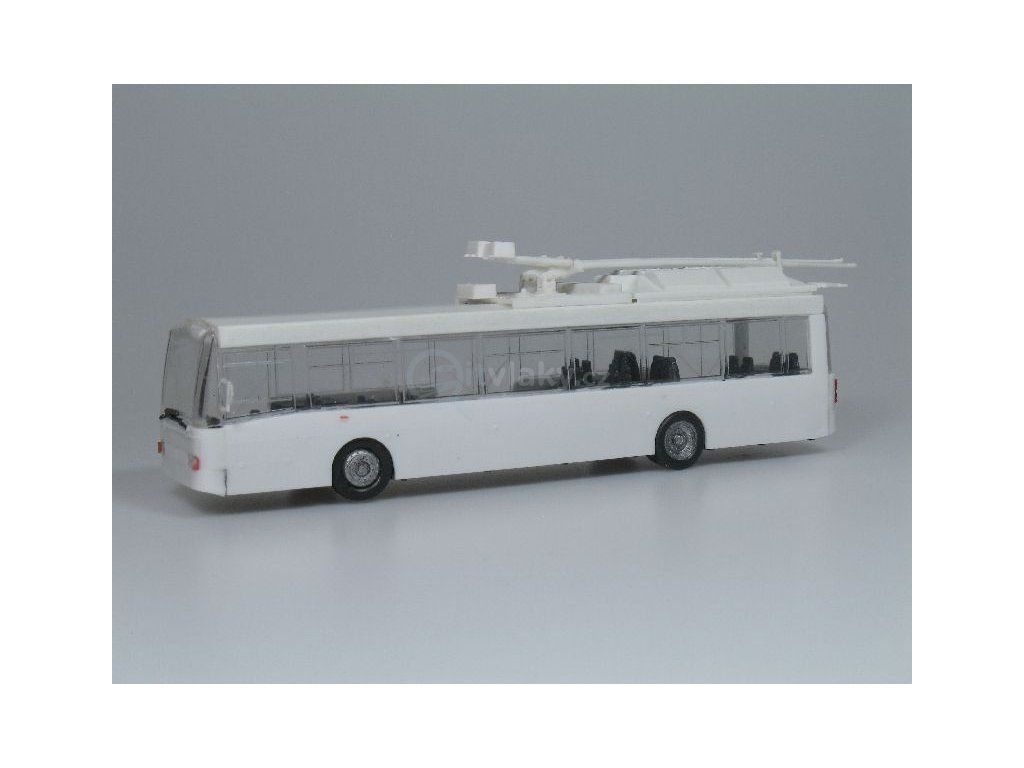 Kompletní plastiková stavebnice trolejbusu. Obsahuje probarvené plastikové výlisky na sestavení modelu a kovové osičky.