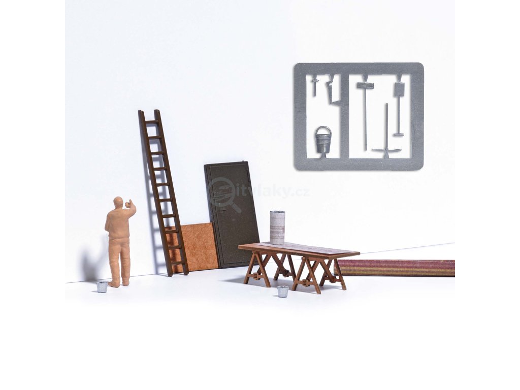 Tato univerzálně použitelná sada nábytku oživí každý byt nebo dům nábytkem, figurkami a tematickými doplňky. Ve scéně malíř tapetuje stěny. S vystřiženým plechem na podlahové krytiny a nástěnné dekorace, žebříkem, stolem na tapetování, rolí tapet, srolovaným kobercem, dveřmi, nářadím a figurkou k samostatnému malování. Stavebnice
