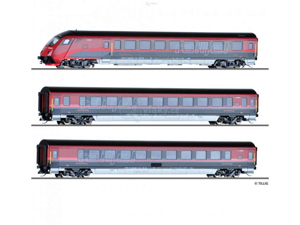 ARCHIV TT - set 3 vozů Railjet ÖBB, 2x 2.třída a řídící vůz / Tillig 01755 E