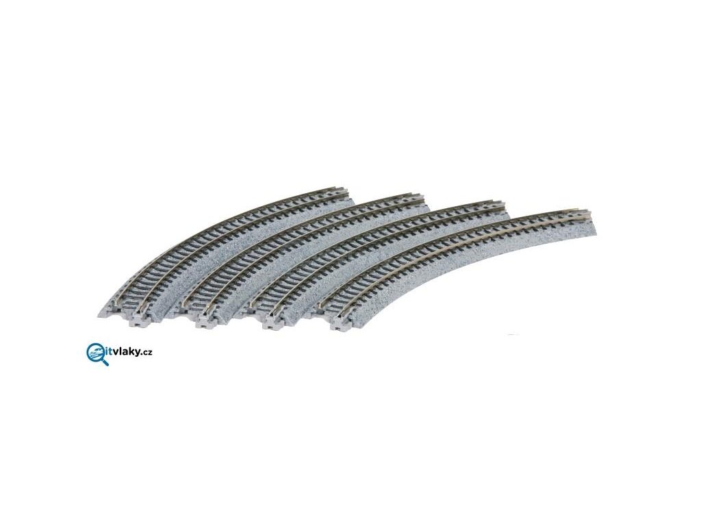 Oblouková kolej R216-45° s podložím, 4 ks v balení.