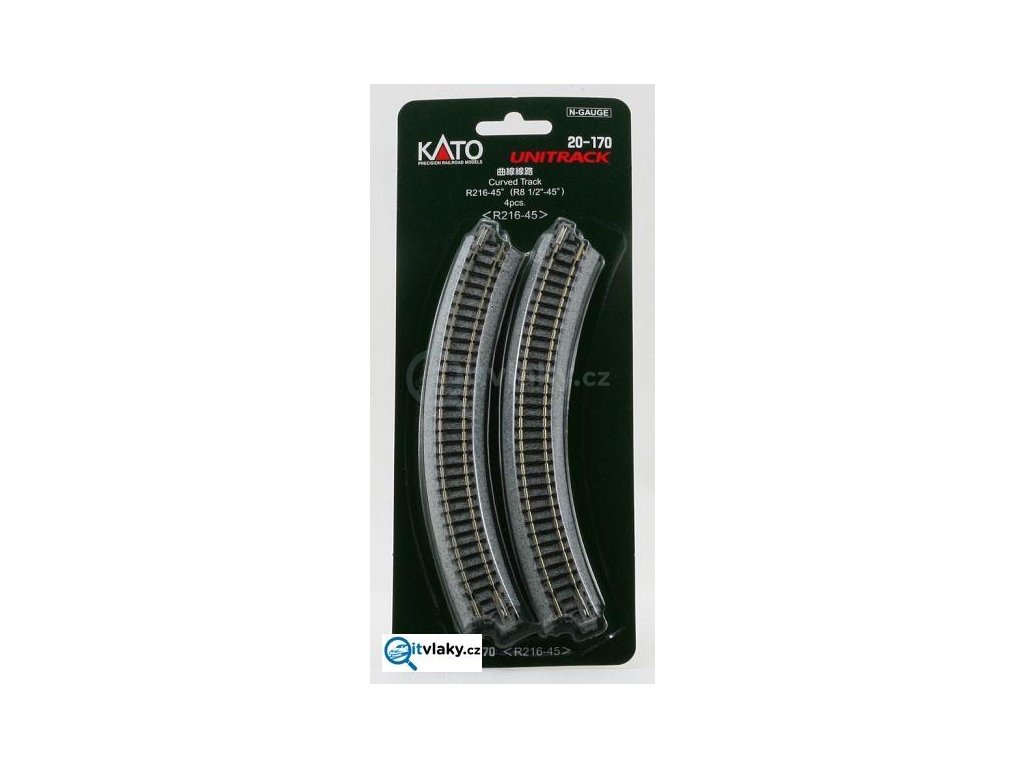 N - 4x oblouková kolej R216 - 45°UNITRACK / KATO 20-170, NOCH 7078112