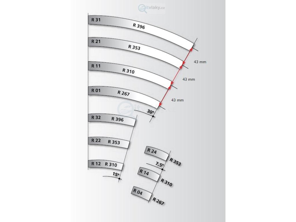 TT - oblouková kolej R 353 mm/ 7,5°, R24 / Tillig 83114
