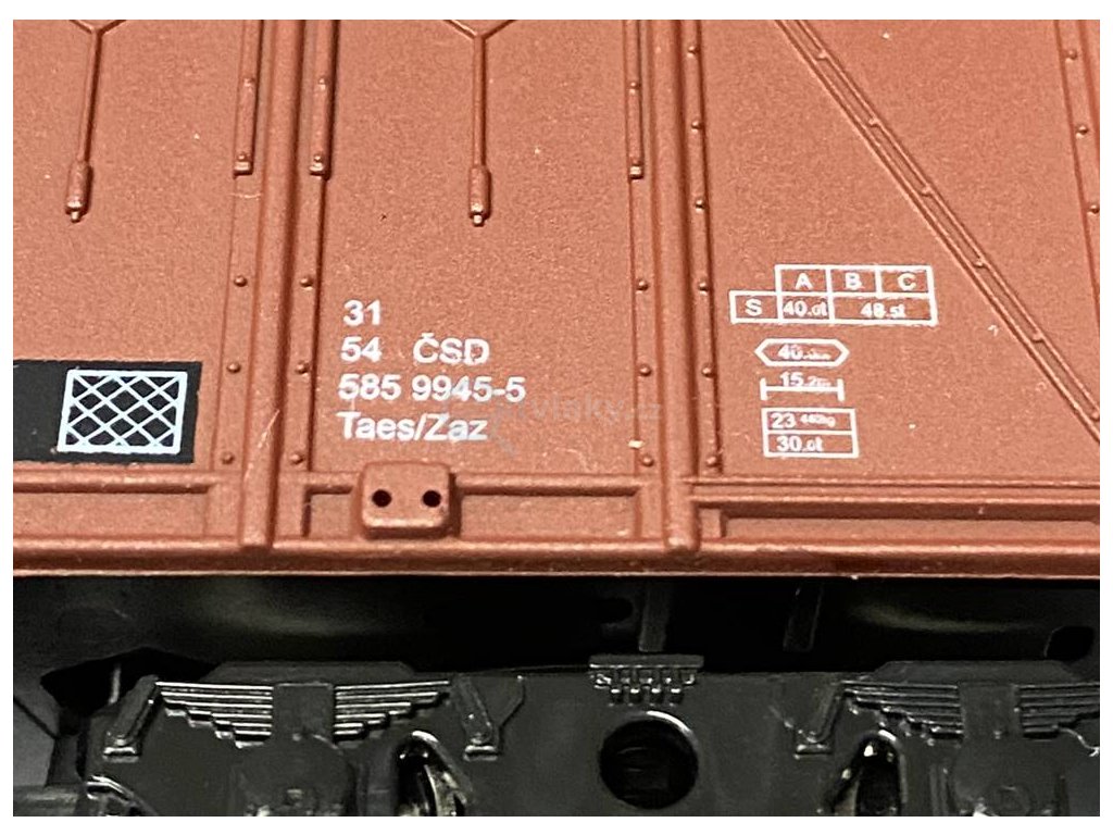 Na model jsou dosazena všechna madla žebříky a čelní plošiny. Ostatní doplňky - kotvy, čelní schůdky, kolo ruční brzdy a armatury na pojezd - jsou dodány v příslušenství.