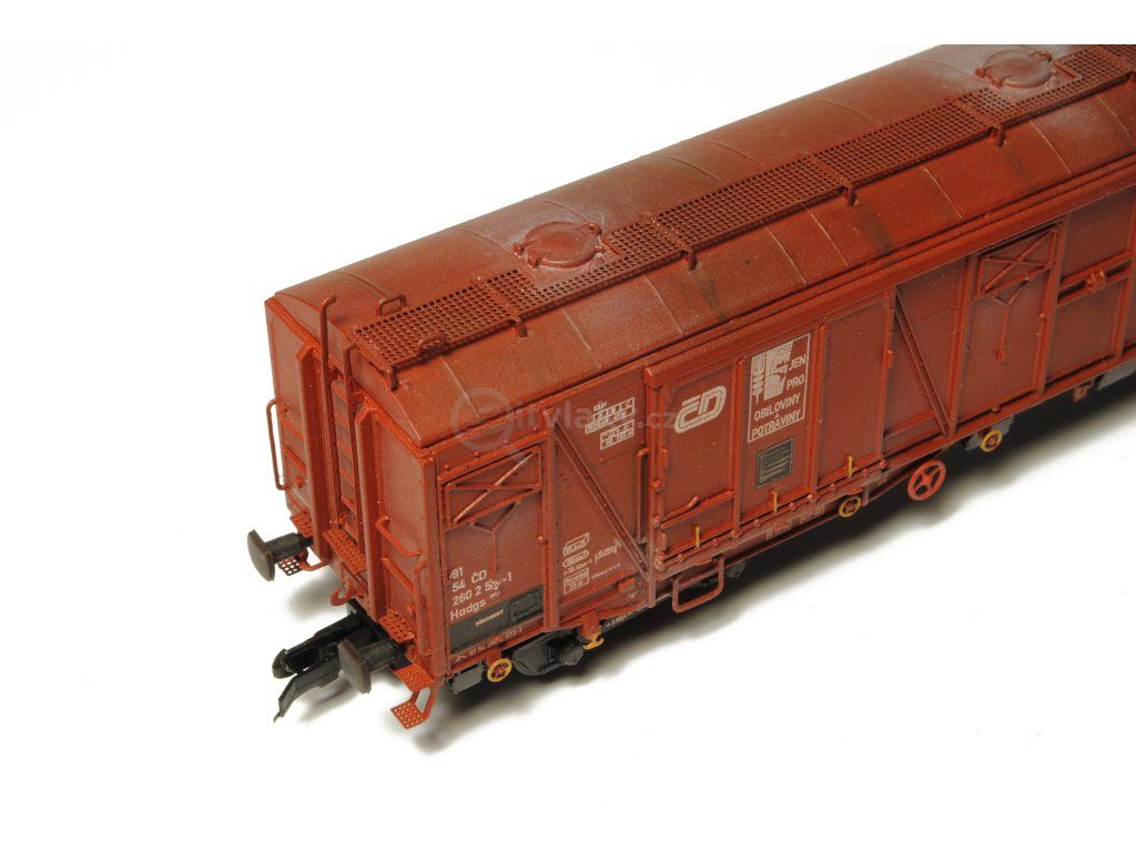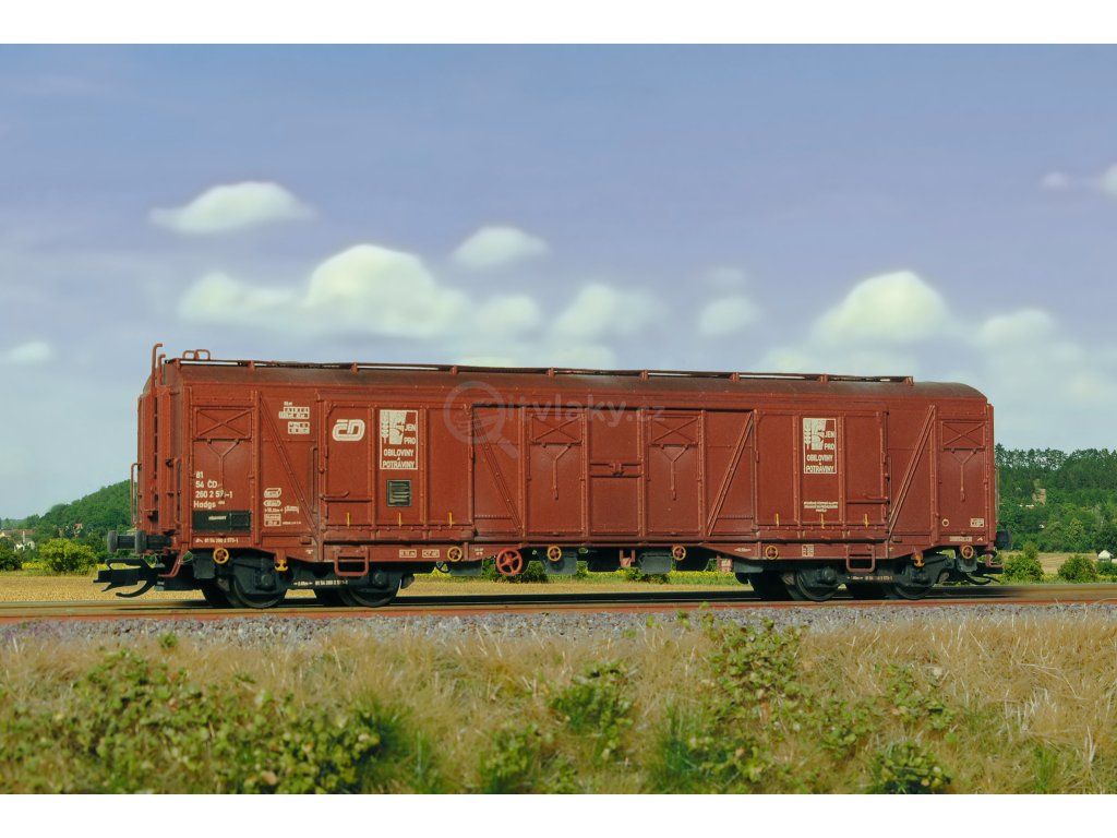 Kompletní stavebnice krytého vozu na přepravu obilovin s výsypkami v podlaze vyráběného ve vagonce Česká Lípa. Obsahuje plastikové výlisky na sestavení modelu včetně kinematik, spřáhel, kvalitních soustružených kovových dvojkolí, kovové lepty, závaží a obtisky. Obtisky nabízí možnost volby provozního čísla a loga dopravců ČD, ČD cargo, V.-VI. epocha.