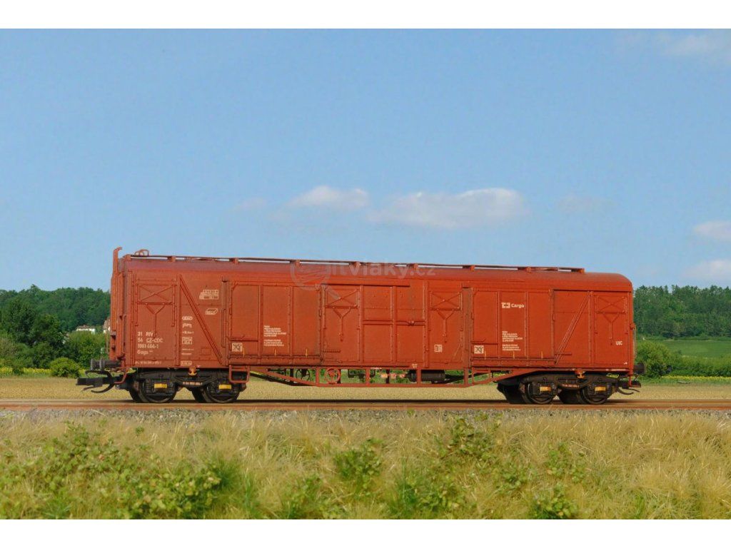 Kompletní stavebnice krytého vozu vyráběného v Tatravagónce Poprad. Obsahuje plastikové výlisky na sestavení modelu včetně kinematik, spřáhel, kvalitních soustružených kovových dvojkolí, kovové lepty, závaží a obtisky s dvojicí provozních čísel. Provozovatel ČD nebo ČD cargo, V.-VI. epocha.
