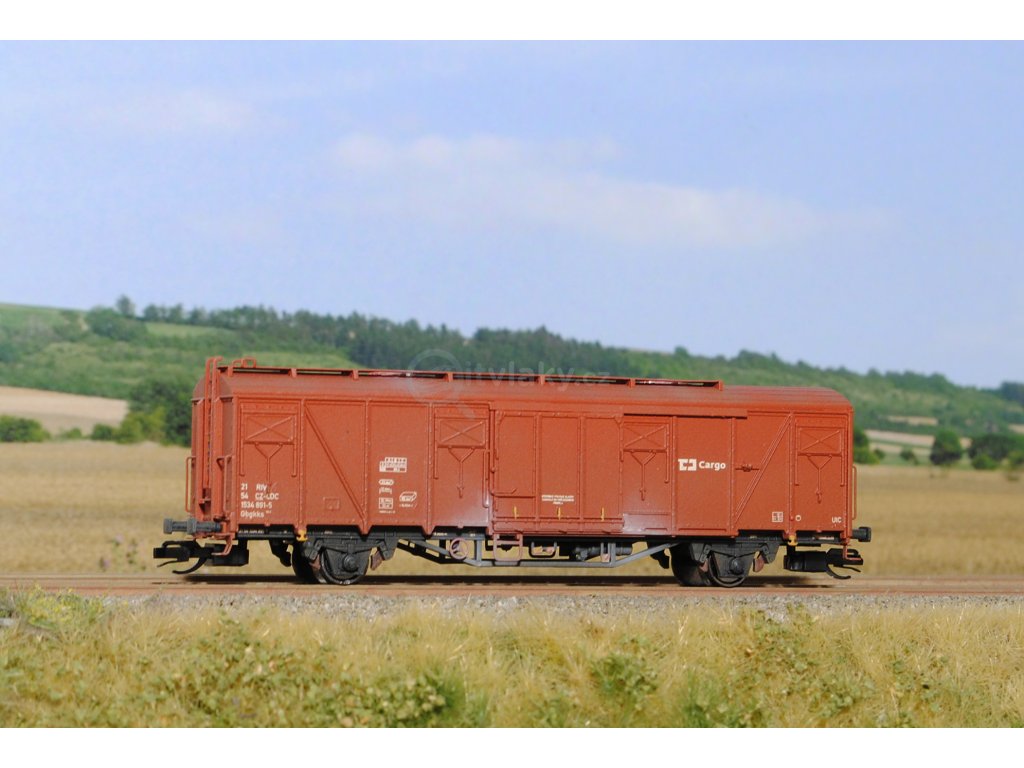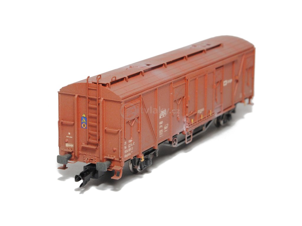 Kompletní stavebnice krytého vozu vyráběného ve vagonce Česká Lípa. Stavebnice představuje vůz v původním stavu skříně. Obsahuje plastikové výlisky na sestavení modelu včetně kinematik, spřáhel, kvalitních soustružených kovových dvojkolí, kovové lepty, závaží a obtisky s dvojicí provozních čísel. Provozovatel ČD/ČD cargo, V.-VI. epocha.