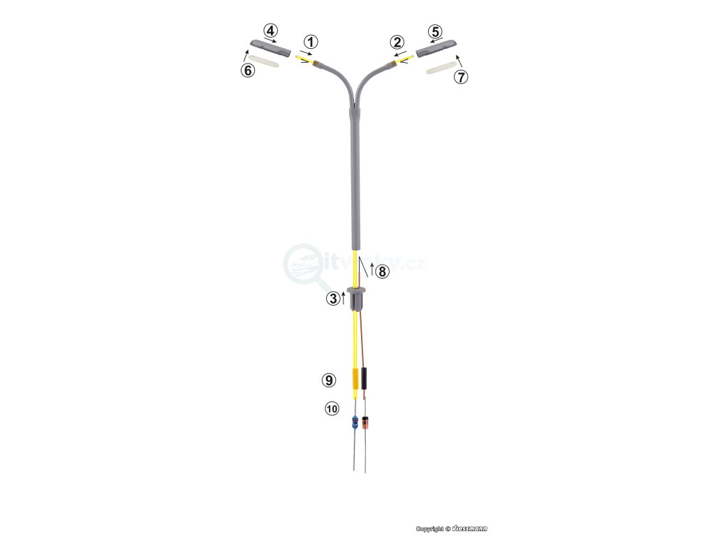 N - Dvojitá pouliční lampa, 54 mm, stavebnice / Viessmann 6623