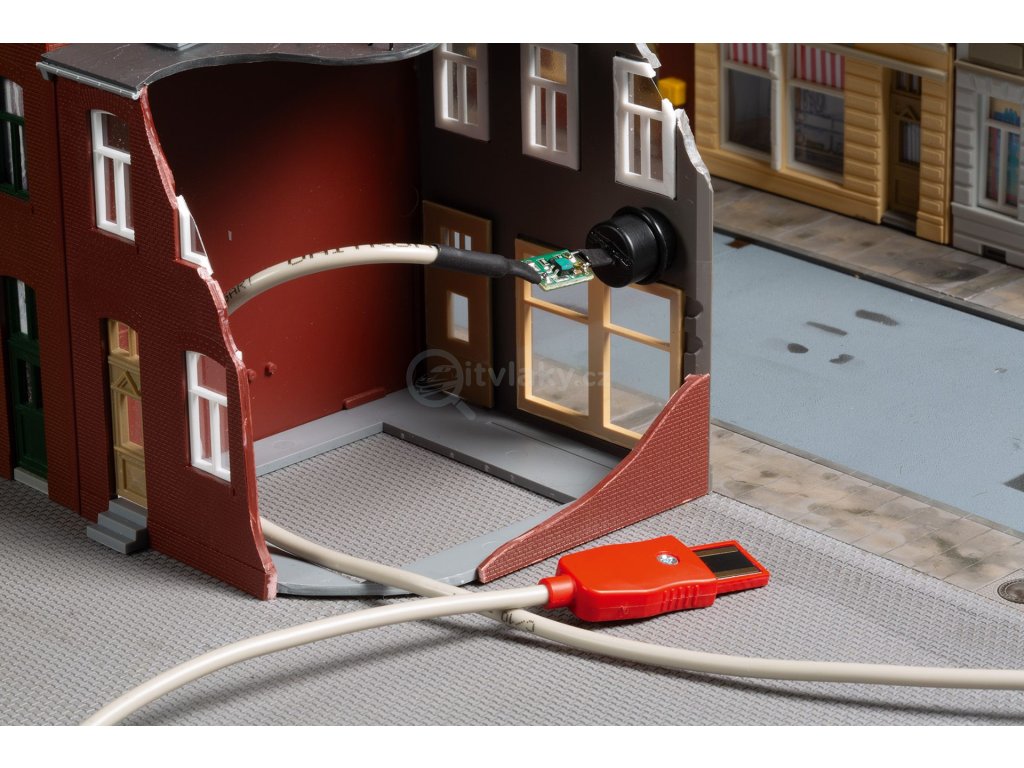 Sada. Nutné zkušenosti s pájením a manipulací s elektronickými součástkami. S trochou improvizační zručnosti je lze instalovat i do jiných modelů budov. Napájení přes USB.