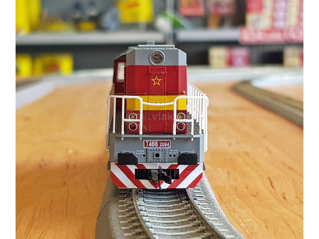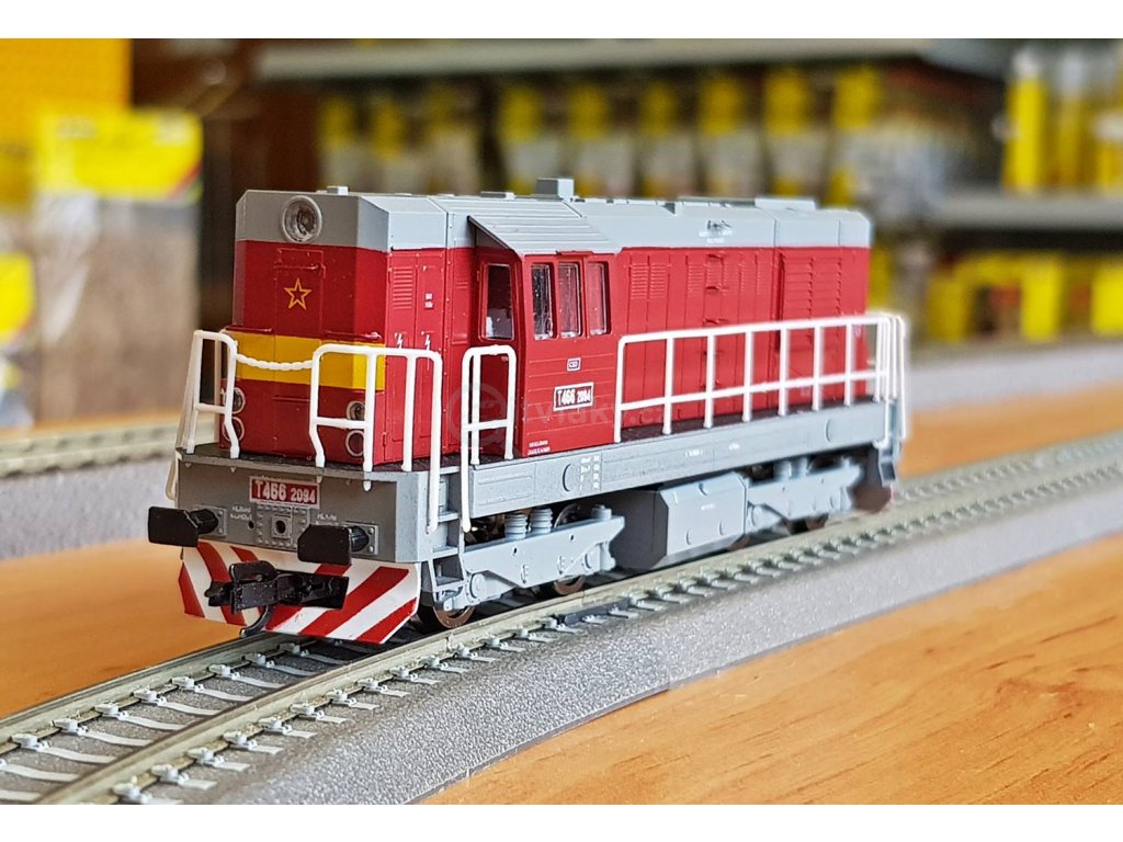 Die dieselelektrische Lokomotive Serie 740/742 (ex. T466.2). Das Modell hat die Ausstattung – Motor mit Reibrad, umschaltbare Erleuchtungen gemäß Fahrrichtung, separater schaltbarer Reflektor (nur Digital), Möglichkeit der Wahl abgeschiedenem Einschalten des Signals und Kabinenbeleuchtung. Die Lokomotive hat also die Schnittstelle Next18S. Die Accessoires werden zugepackt.