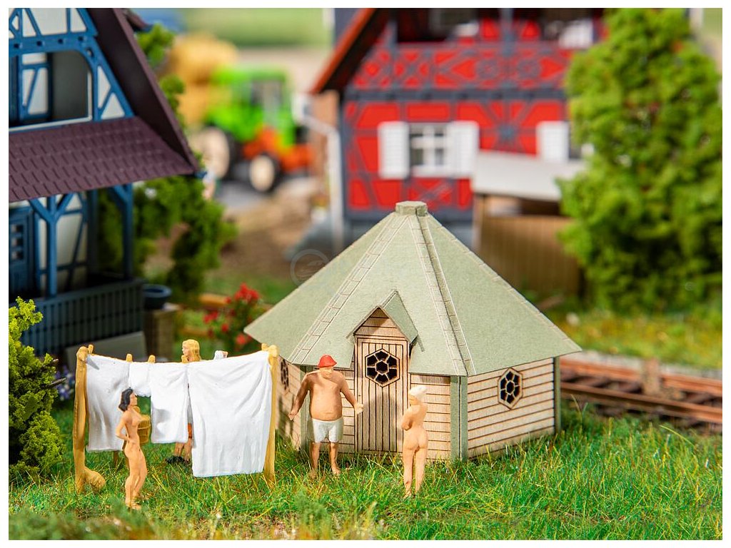 H0 - Sauna s vnitřním vybavením a LED osvětlením, funkční sada / Vollmer 45146