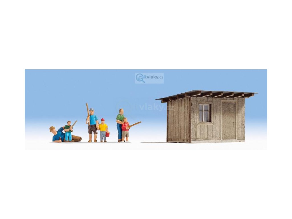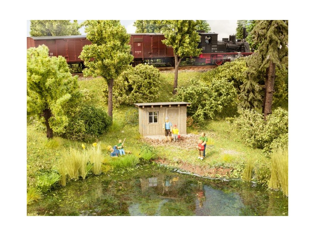 H0 - Pohoda u rybníka, figurky a kůlna / NOCH 12036
