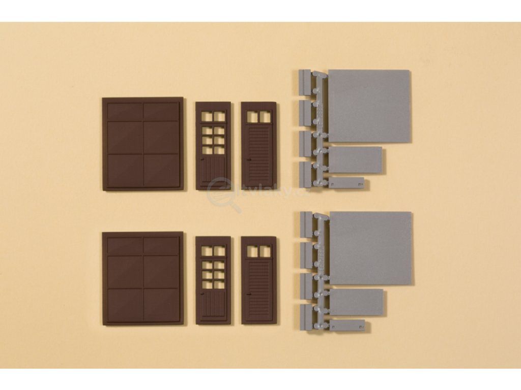 H0 - Vrata a dveře hnědé, schody, rampy / Auhagen 80257
