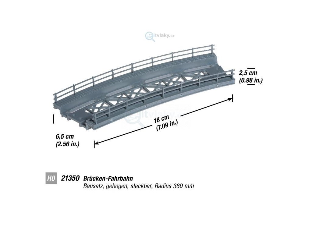 Stavebnice zahnutého mostu dlouhého 18cm / Radius 360 mm / Doplněk k modelové železnici v měřítku H0, ve zmenšení 1:87.