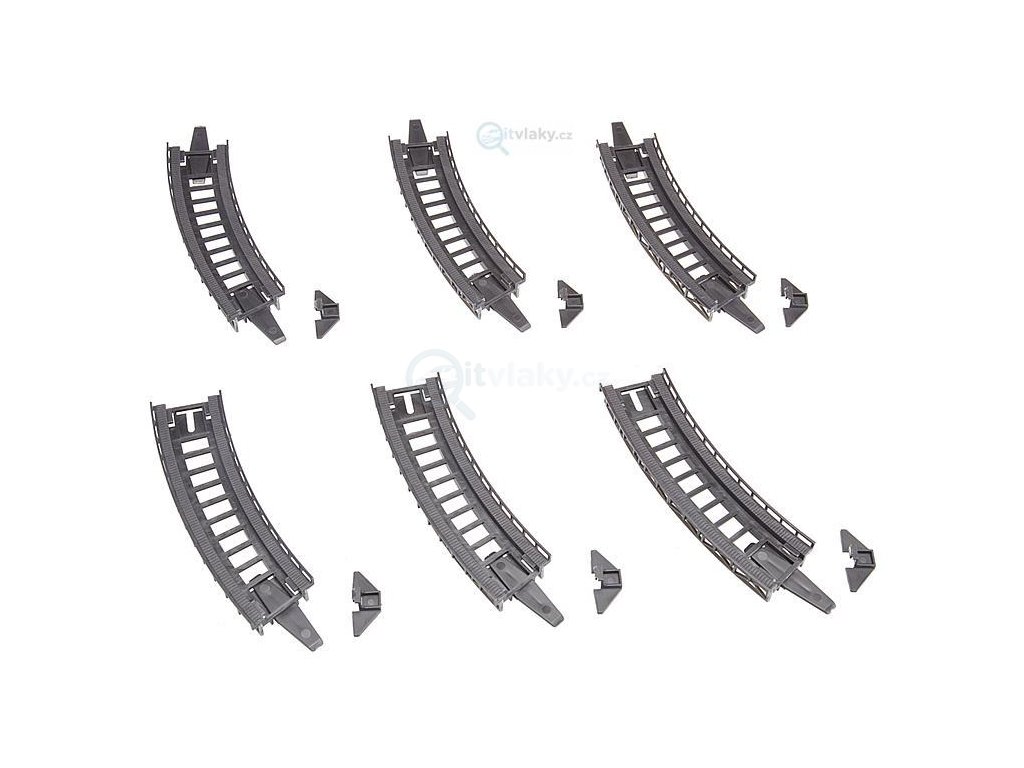 6 kolejových loží s příhradovou konstrukcí, R 2, 30°. Vhodné pro všechny značky kolejnic.