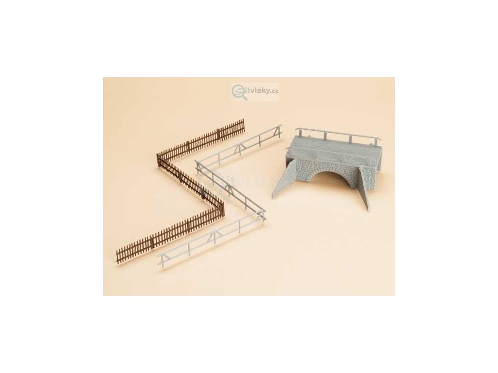 H0/TT - Malý kamenný most 70 x 32 x 30 mm + ploty / Auhagen 42555