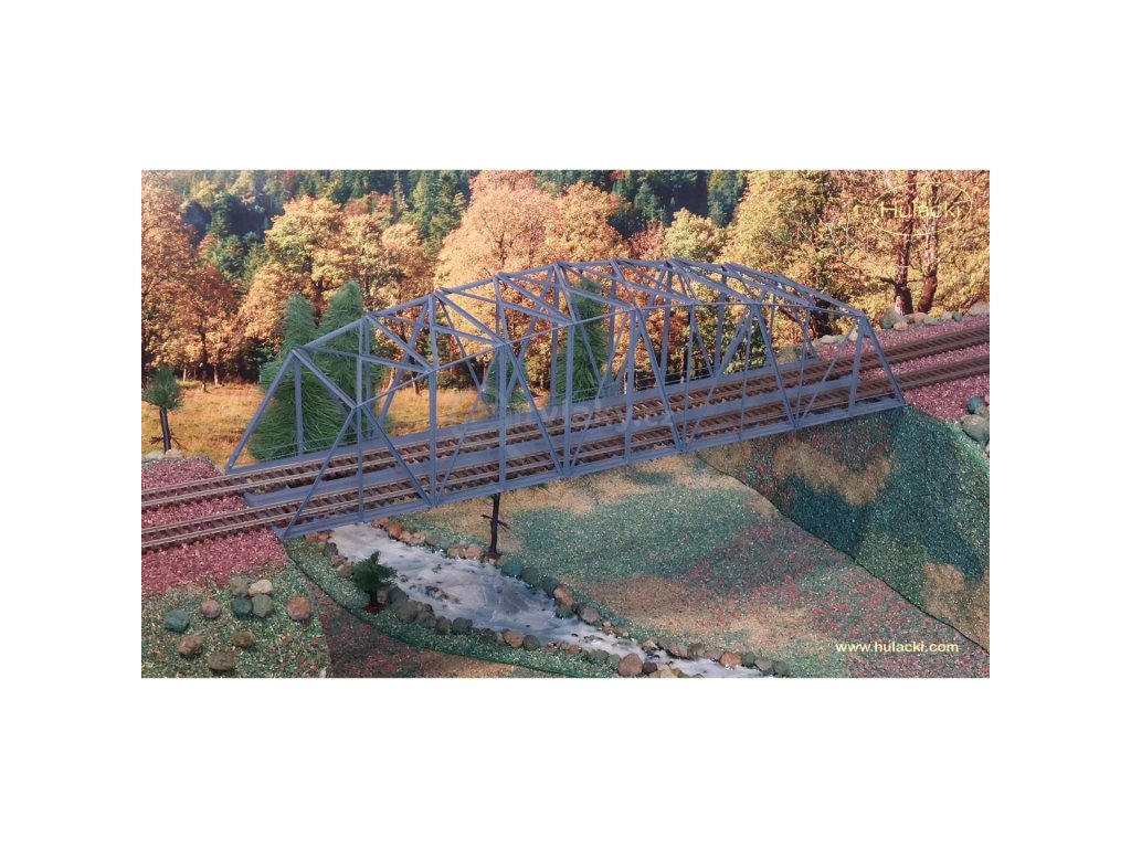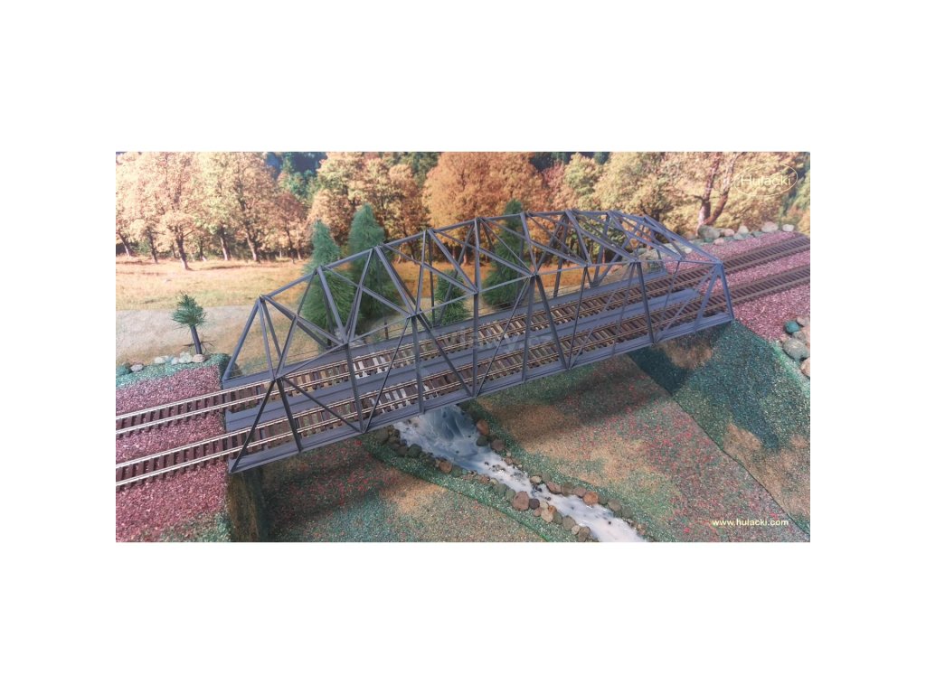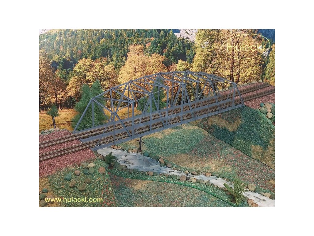 H0 příhradový most, 500 mm, pro 2 koleje, kovový. Délka: 500 mm, šířka: 107 mm, výška: 115 mm.