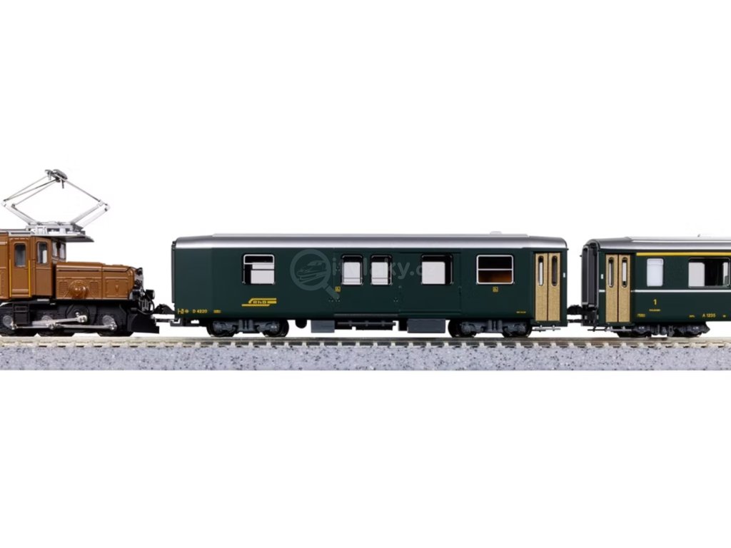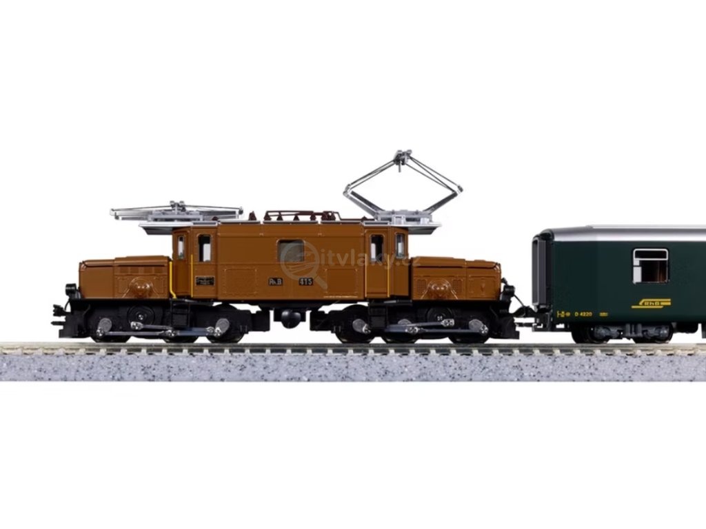 Personální vlak RhB v měřítku N tvoří elektrická lokomotiva Ge 6/6 I č. 415 „Rhätisches Krokodil“ v hnědém nátěru a čtyři vozy typu EW I v zeleném provedení – zavazadlový vůz, jeden vůz 1. třídy a dva vozy 2. třídy. Souprava odpovídá stavu z počátku 80. let. Model lokomotivy má jemný pojezd se strojním převodem a směrově řízené čelní osvětlení. Vozy jsou připraveny pro instalaci vnitřního osvětlení K11‑211/K11‑212. Model je určen pro běžná N‑kolejiště a projede minimálním poloměrem 150 mm.