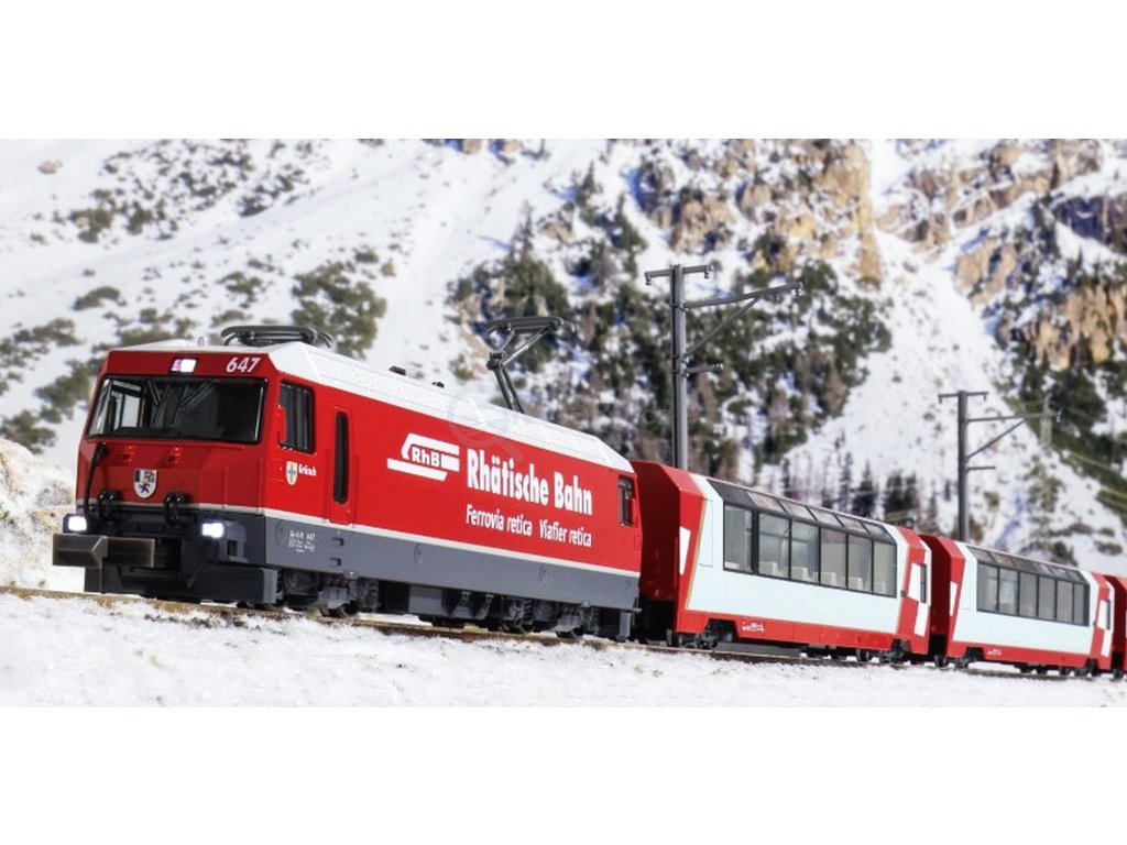 Sada se skládá z lokomotivy třídy Ge 4/4 III a dvou osobních vozů Rhétské dráhy (RhB) Glacier Express. Lokomotiva má silniční číslo 647. Pro digitalizaci doporučujeme výměnnou desku Kato (č. položky K29-025).