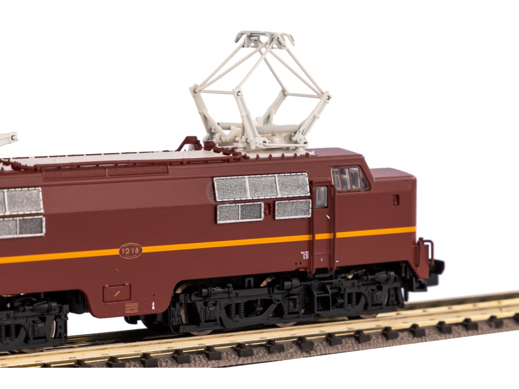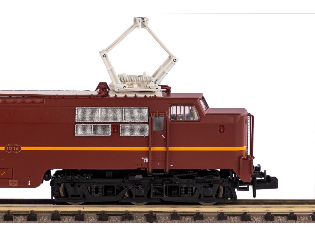 Variante der NS 1200 in Epoche III. Das PIKO Modell der NS 1200 zeichnet sich durch sehr feine Gravuren am Lokgehäuse und den Drehgestellen aus. Einen besonderen Blickfang stellen die filigranen Stromabnehmer und die Nachbildung des Daches dar, die alle Details des Originals präzise wiedergeben. Ein kräftiger Motor garantiert die problemlose Beförderung originalgetreuer Schnellzüge. Das Modell besitzt eine Next18-Schnittstelle und den üblichen Lichtwechsel rot/weiß. Die Führerstandsbeleuchtung ist digital schaltbar. Zusätzlich wurden zwei Räder in diagonaler Anordnung mit Haftreifen versehen. Das PIKO Modell besitzt hervorragende Laufeigenschaften und kann problemlos Radien bis herab zu 192 mm durchfahren. Das Modell verfügt ab Wer über einen passenden PIKO Sound-Decoder.