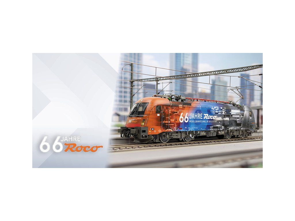 Speciální jubilejní edice lokomotivy Taurus 1216 006, vydaná k 66. výročí značky ROCO. Model je vybaven NEM šachtou a součástí balení je také adaptér pro použití se soupravami Railjet, které jsou z výroby osazeny elektrickou spřáhlou. Digitální zvuková verze.