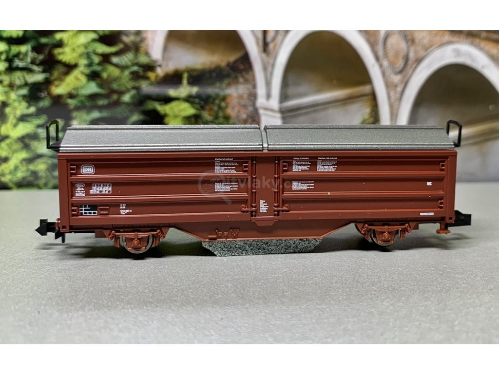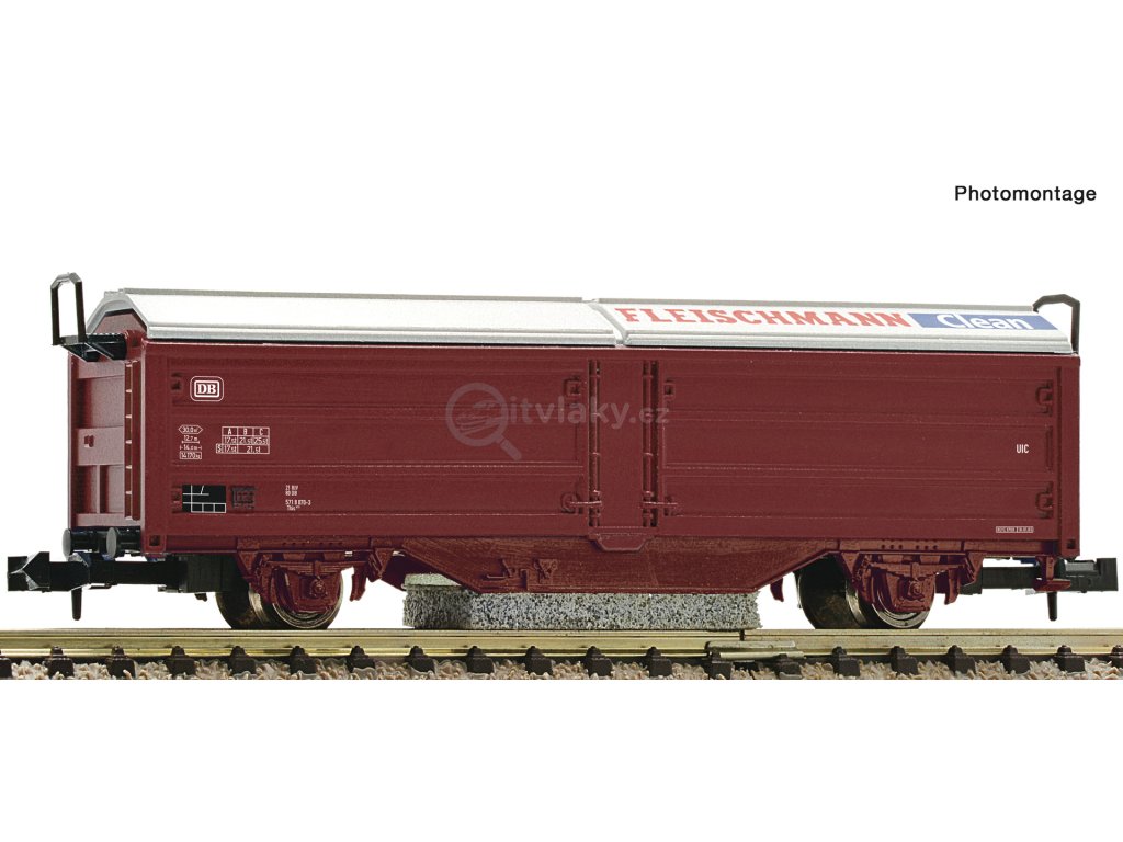 Vůz s posuvnou stěnou "FLEISCHMANN Clean" pro čištění kolejí Deutsche Bundesbahn.
