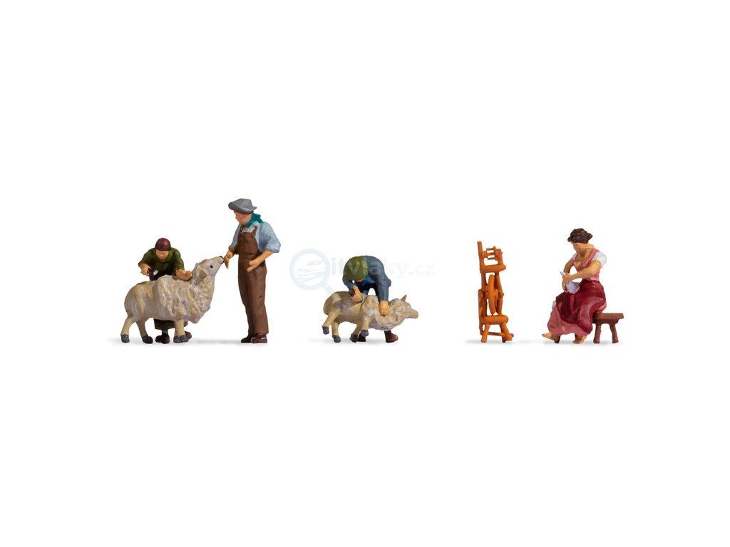 H0 - stříhání ovcí, 5 figurek / NOCH 15751
