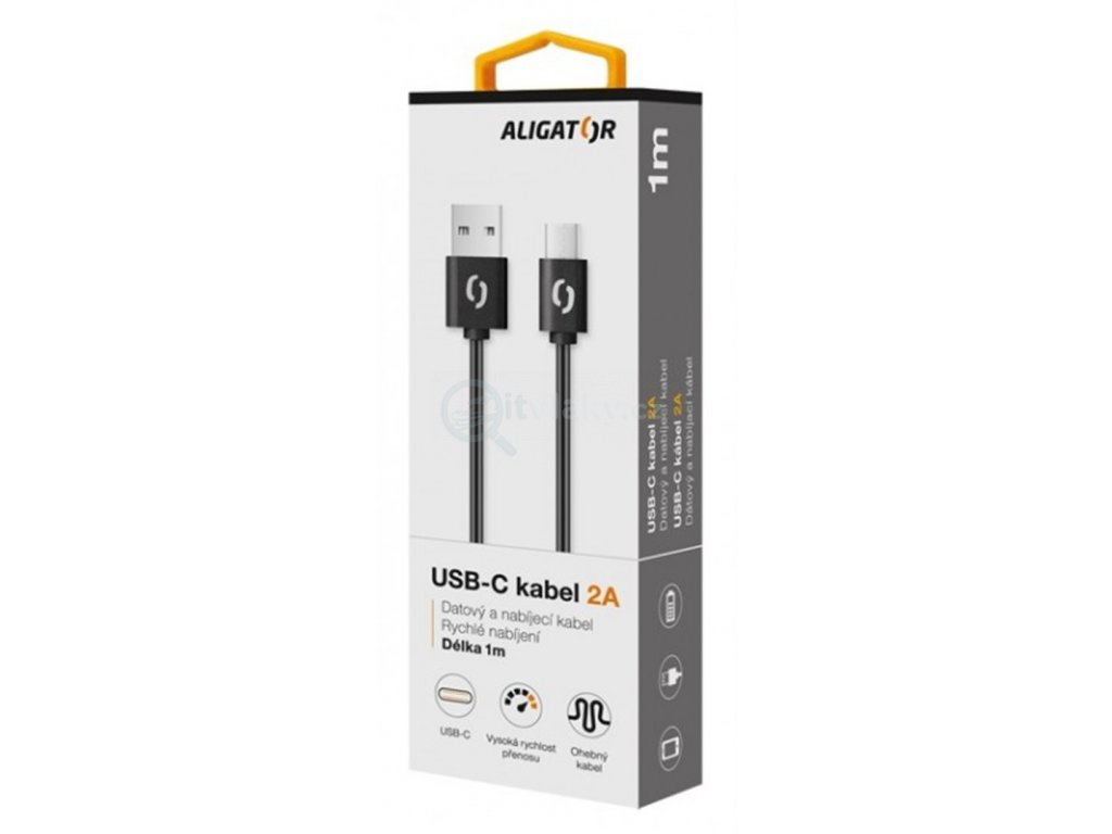 kabel nabíjecí USB-C 1 m, černý, 2A, rychlé nabíjení, v krabičce / ALIGATOR DAKA005