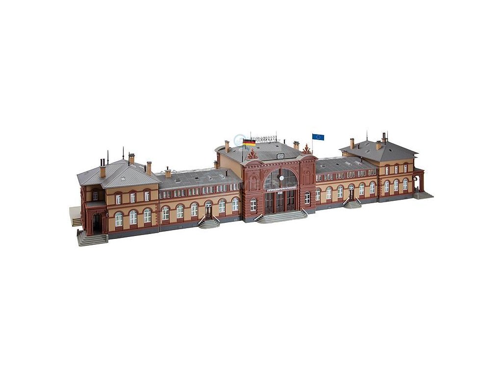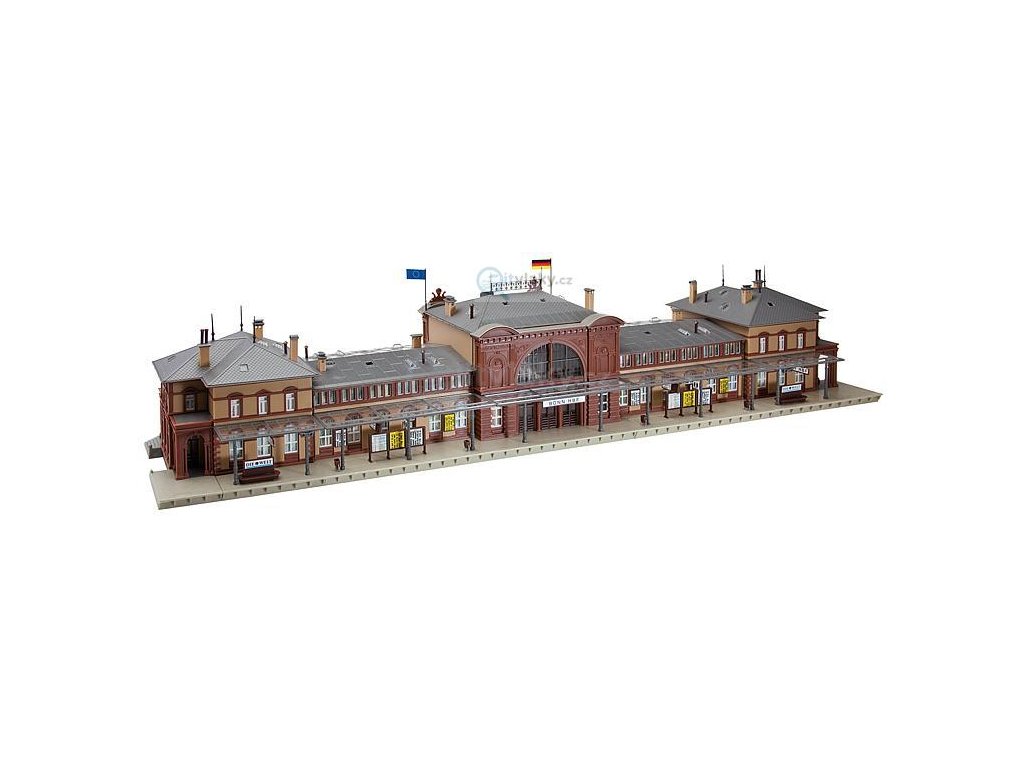 Mnoho dekorativních dílů, které realisticky oživují obraz stanice: Vlak jede, reproduktory, hodiny, papírové koše, tabule ukazující stav vozů, lavičky, tabule s jízdními řády, osvětlený kiosek, skříňky na zavazadla, pokladna a různé reklamní nápisy. Zvláště zajímavé efekty vytváří osvětlení centrální přijímací budovy. Kromě toho zde mohou být osvětleny také kiosky a pokladny. Osvětleny mohou být i mezipatra a rohové budovy. Stavba tohoto velkého modelu je značně zjednodušena tím, že 5 komplexů budov se slepí jednotlivě a teprve poté se sestaví do kompletního modelu.