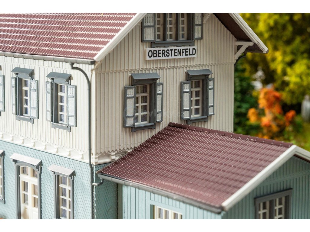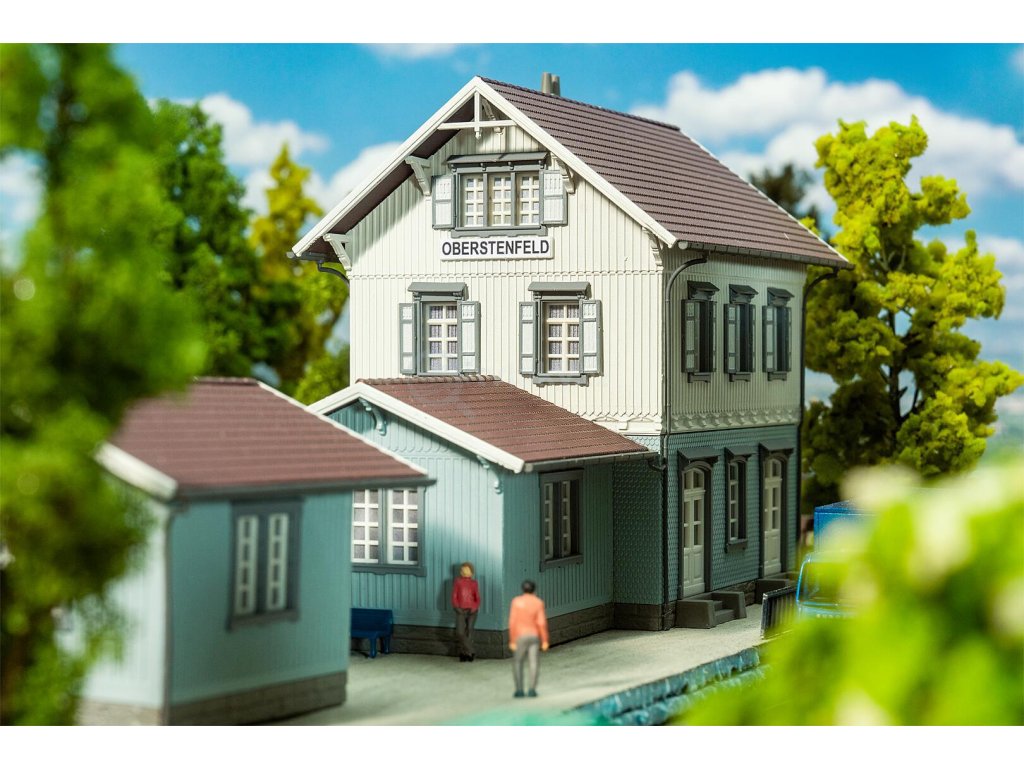 Vlak pomalu vjíždí na koleje a cestující na nástupišti se připravují na odjezd. Stanice se světle modrobílou dřevěnou fasádou, navrženou podle původního modelu Oberstenfeld, je na modelovém uspořádání skutečným poutačem pozornosti. Oberstenfeld se nachází na Bottwartalbahn mezi Marbach a Heilbronn. Po uzavření železnice byla stanice obnovena a nyní slouží jako místní komunitní centrum. Ztělesňuje kouzlo typického maloměstského vlakového nádraží, plné láskyplných detailů, které mu dodávají zvláštní charakter.