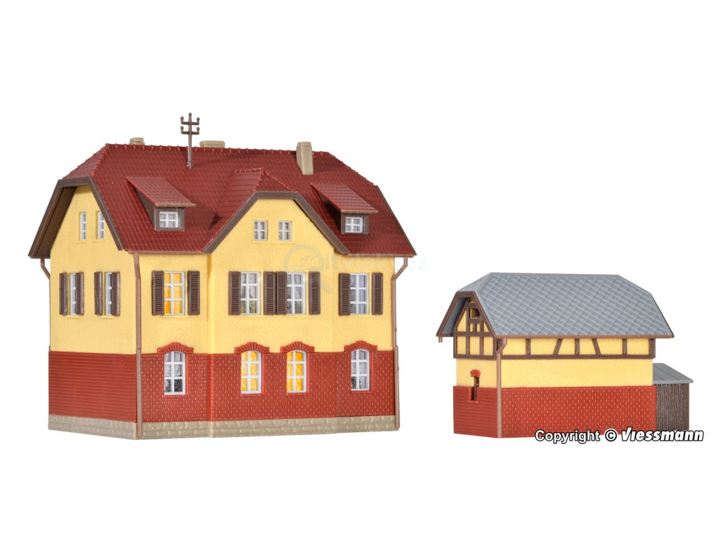 N - Obytná budova s venkovními budovami včetně osvětlení / Kibri 37112