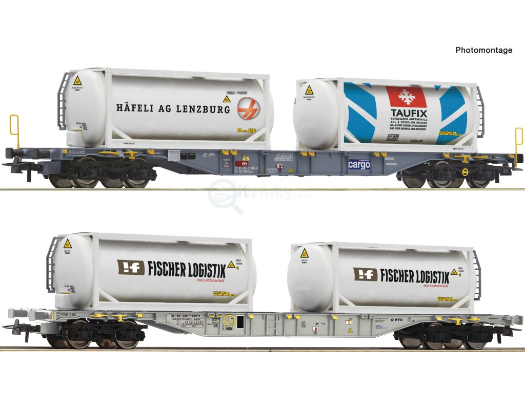 H0 - 2-dílná sada vozů Containertragwagen Sgns SBB + Tankcontainer / ROCO 6600231
