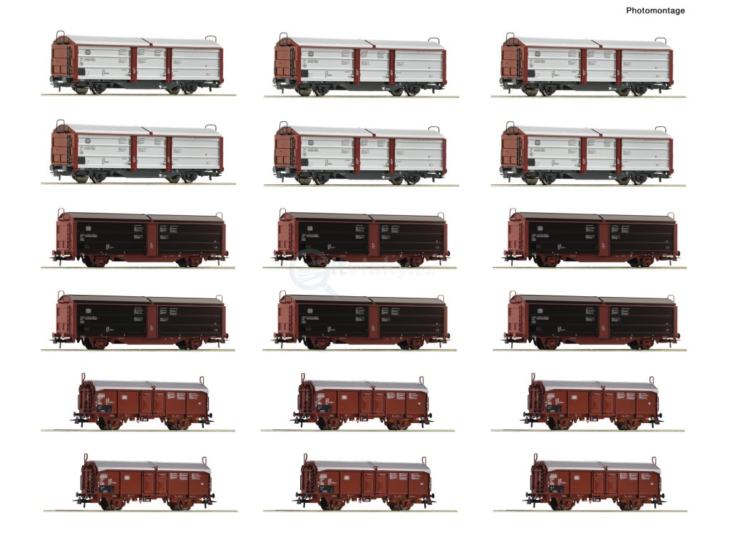 H0 - 18-dílný set vozů Rangierbahnhof Schiebedach-/Schiebewandwagen / ROCO 6600340