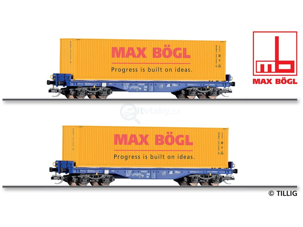 TT - set 2 kontejnerových vozů Sgmmns 4505 ERR, 2x kontejner 40‘ Max Bögl / TILLIG 01108 E