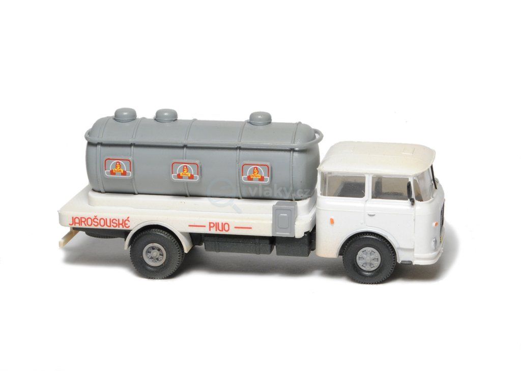 Kompletní plastiková stavebnice automobilu pro převoz piva. Obsahuje probarvené plastikové výlisky na sestavení modelu, kovové osičky a sadu obtisků.