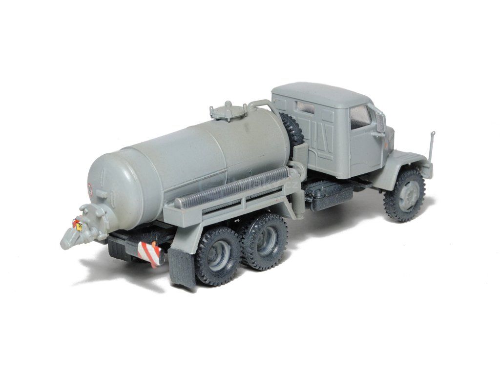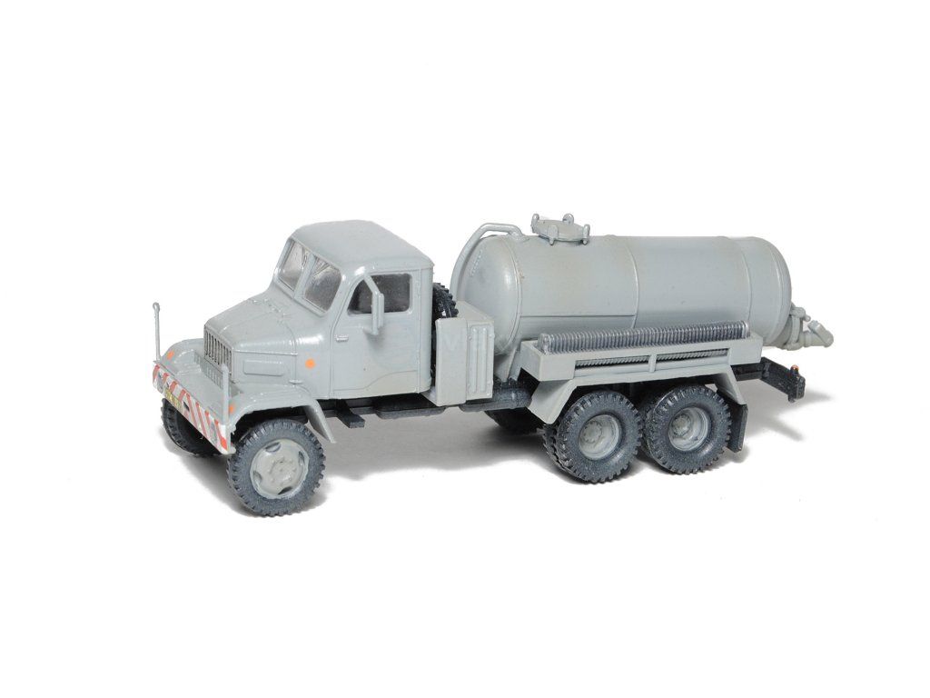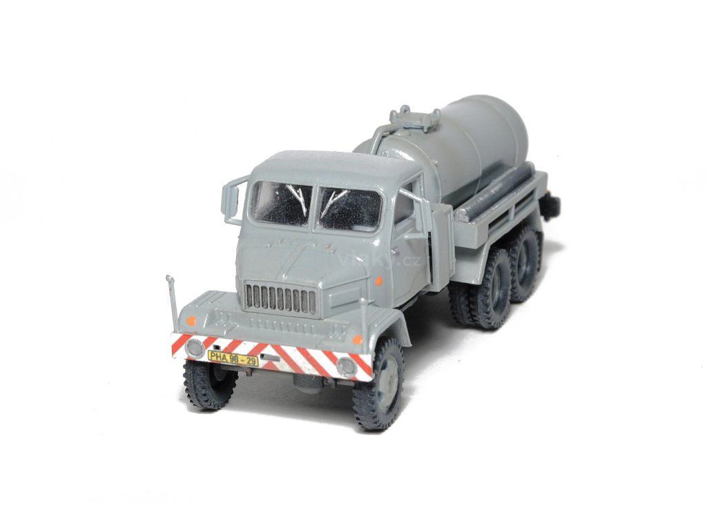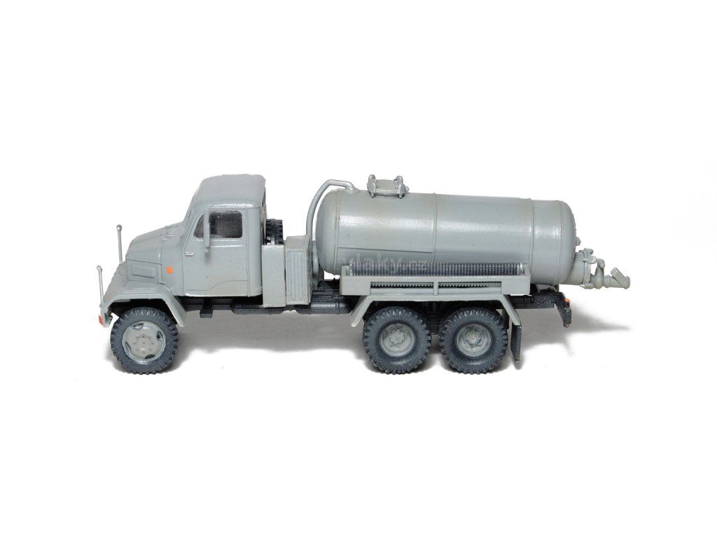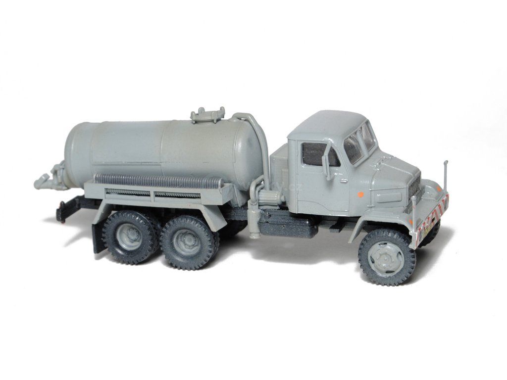Kompletní plastiková stavebnice fekálního automobilu. Obsahuje probarvené plastikové výlisky na sestavení modelu, kovové osičky a sadu obtisků.