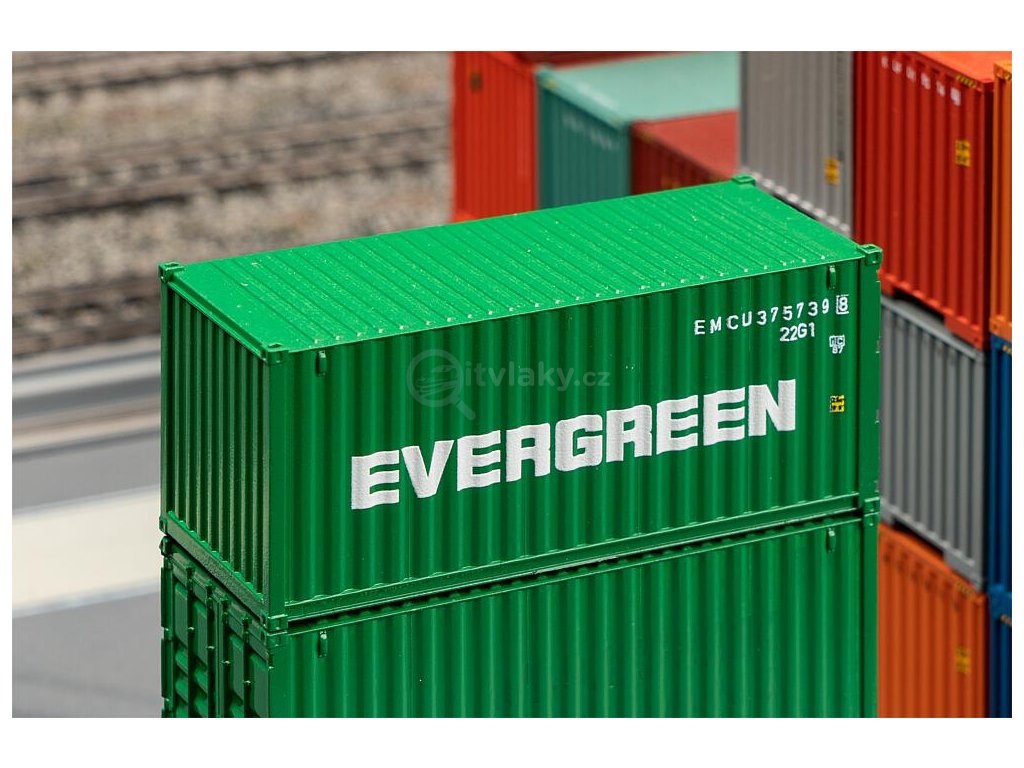 Sada 20' kontejnerů s digitálním potiskem označení společnosti "EVERGREEN". Barva: zelená.