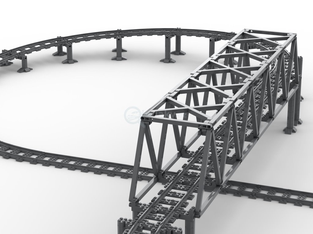 Obsahuje vše, co potřebujete k sestavení vyvýšeného kolejiště 8-členné soupravy s mostem: podpěry, most a koleje.