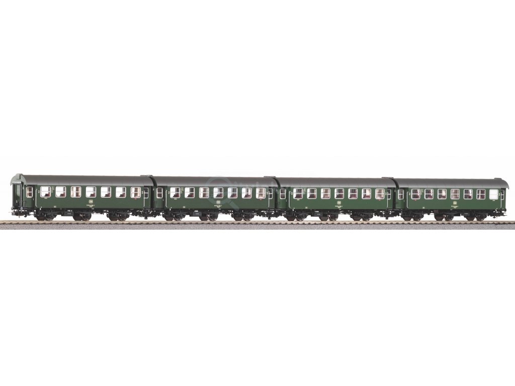 Novinka 2023: Sada čtyř přestavbových vozů DB s krátkým spřáhlem v éře IV. Vozy se ideálně hodí k modelu elektrické lokomotivy DB třídy 110 (#51923). Na rozdíl od prototypu se u modelů třínápravových přestavbových vozů PIKO nepoužívají stávající díly, ale odborný model byl zcela přepracován. Vozy v měřítku 1:87 přesně kopírují originál do nejmenších detailů. Individuálně připevněná madla jsou součástí moderního designu stejně jako zapuštěná, křišťálově čistá okna a detailní vybavení interiéru. Perfektní design pokračuje i na podlaze vozu. Přesvědčí volně stojícím vedením, filigránovým brzdovým táhlem i posunovacími rukojeťmi a kovovými záchytnými koly. Stejně jako prototyp se přestavbové vozy PIKO prodávají jako těsně spřažené dvojice a díky přesně vedené kinematice těsného spřažení mají prototypové vzdálenosti mezi vozy. Vůz doplňuje na přání dodávané osvětlení interiéru.