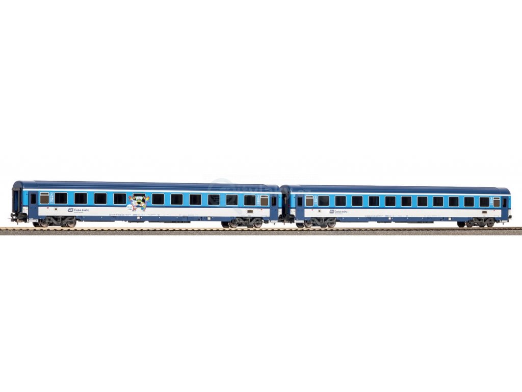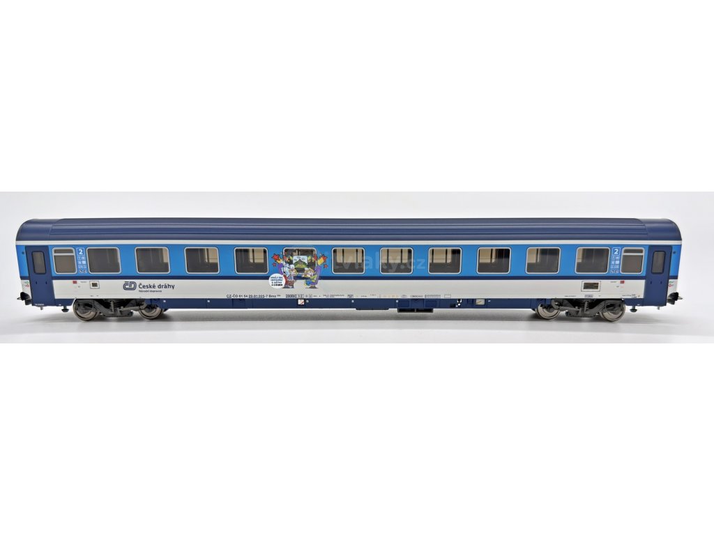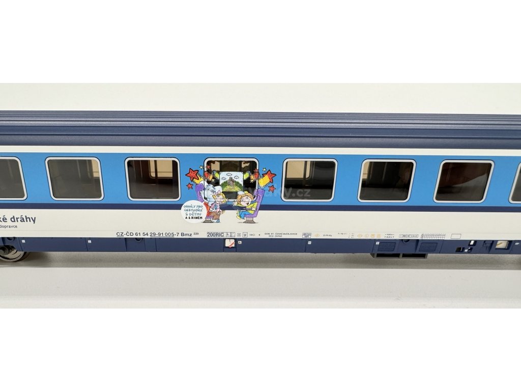 Souprava dvou rychlíkových vozů Eurofima v provedení ČD v éře V. V 70. letech 20. století evropské železnice technicky srostly, aniž by ztratily svůj samostatný charakter, což se projevilo společným pořízením moderních osobních vozů. Vozidla byla precizně reprodukována v měřítku 1:87 a vyznačují se naprosto harmonickým tvarem a barevností. Filigránové podvozky a precizní rytiny střešního lemování jsou příklady současného designu. Individuálně navrženo LED osvětlení interiéru lze u tohoto typu vozu snadno dovybavit.