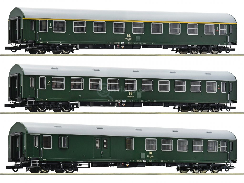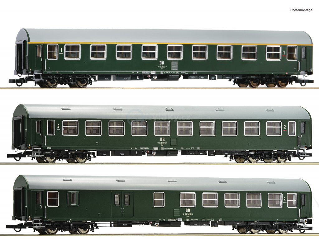 H0 - 3-dílný set zelených osobních vozů Y/B70 DR, Ep. IV, část 1 / ROCO 6200028