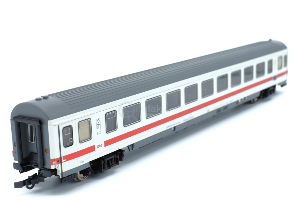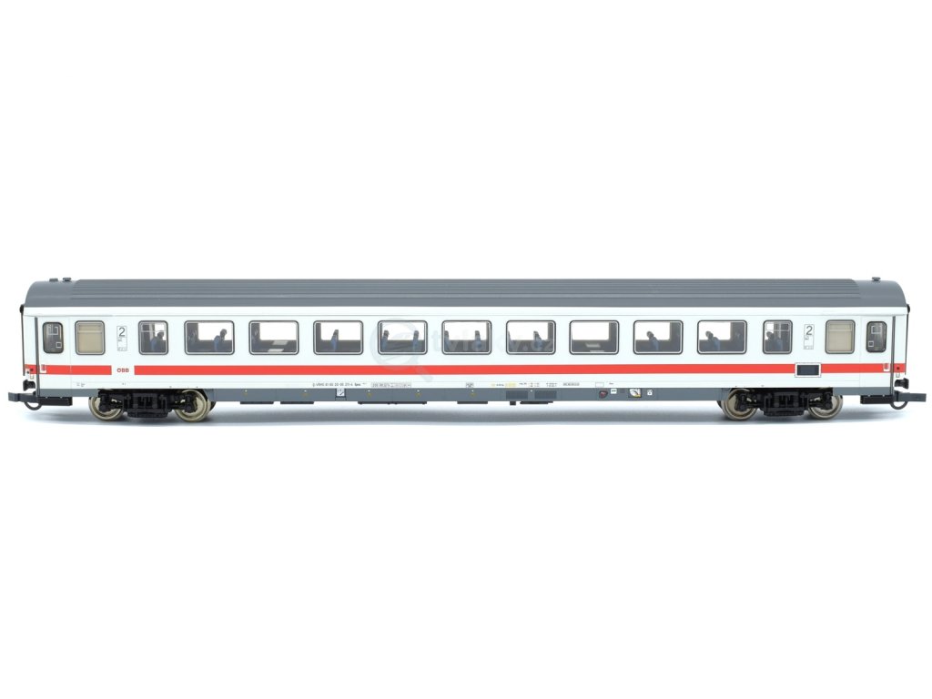4 piece set: Express train coaches, ÖBBWagenset mit vier Schnellzugwagen der Österreichischen Bundesbahnen. Bestehend aus einem Servicewagen 2. Klasse, Gattung Bvmsz 186.0 und drei Großraumwagen 2. Klasse, Gattung Bpmz 294.2. ■ Ehemaligen DB AG IC-Wagen im Einsatz bei den ÖBB Aufgrund von Engpässen im Fuhrpark der ÖBB wurden von der Deutschen Bahn AG 30 IC-Reisezugwagen gemietet, welche vorwiegend auf der Westbahn, aber auch vereinzelt auf anderen Strecken angetroffen werden können. Bespannt werden die IC-Züge überwiegend mit Taurus-Lokomotiven, speziell angebrachte ÖBB-Wortmarken Logos kennzeichnen die besonderen Wagen.
