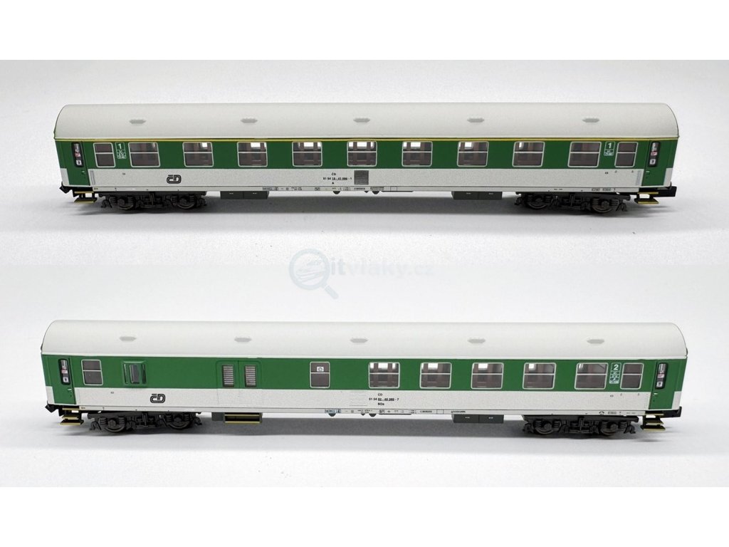 Vorbild: 1 Schnellzugwagen 2. Klasse mit Gepäckabteil Bauart Y-B/70 und 1 Schnellzugwagen 1. Klasse der Tschechischen Eisenbahn (České drahy ČD). Baujahr ab 1968.