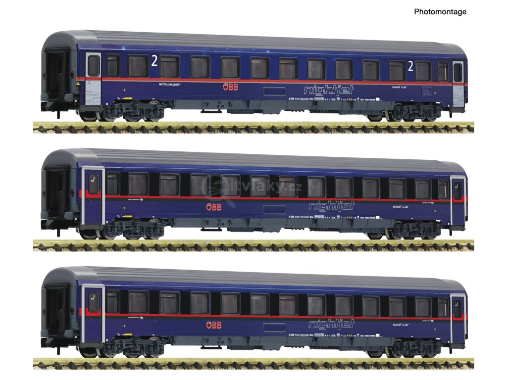 N - Set 3 osobních vozů Eurofima „Nightjet“, ÖBB, VI / Fleischmanm 6260084